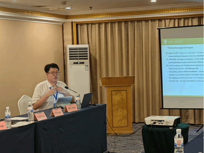 在德国拜罗伊特大学留学时接触到了《千字文》德译本,惊叹于瑞士汉学家林小发的精妙译笔与匠心独运,以此为研究对象撰写的研究论文先后入选南开大学和中国人民大学的外语研究生学术论坛,并被收录在学术论文集当中。同时,源于对科幻小说和其翻译的兴趣,在导师顾牧教授的指导下,申请的研究生科研创新项目顺利获批立项。在研究课题逐步推进的过程中,我对科研工作从规划到实施再到成果总结的完整流程有了更加清晰的认知。基于对该课题前期研究工作,确定硕士毕业论文选题。同时,在此课题的框架内,我积极参与学术会议交流,先后参加2024年亚洲日耳曼学学者大会以及第二届世界汉学家大会,在会议上宣介研究成果,吸纳专家学者的修改建议。