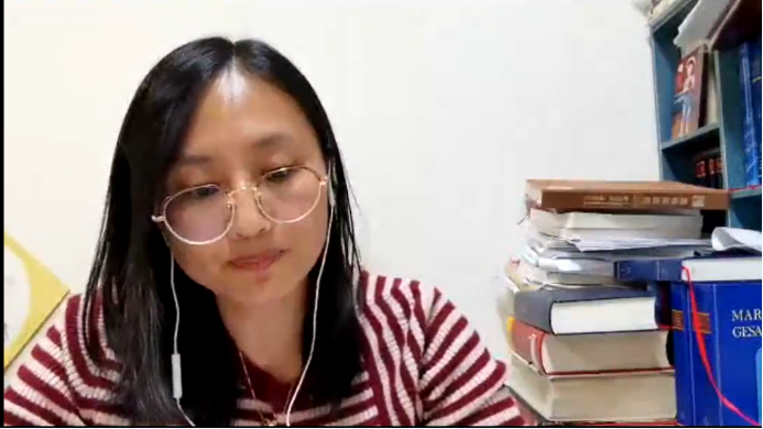 2020年11月30日,YABO鸭脖官网研究生第三党支部邀请北外德语系校友、中央党史和文献研究院第五研究部一级翻译张凤凤老师,通过腾讯会议,在线分享了她在中央编译局工作经历,YABO鸭脖官网研究生第三党支部书记彭孔翎主持分享会。张凤凤老师从中央编译局历史、德文岗位工作、编译人才前景三方面为研究生们分享了一名中央编译局德语翻译的工作全景。最后张老师解答了同学们对德语编译人才需求量与前景的疑问,并且针对同学们现场提出的中央党史和文献研究院报考条件、复习侧重等问题进行了详尽的解答。最后,YABO鸭脖官网辅导员张春霞老师致总结词并对张凤凤老师的莅临表示感谢,会议圆满结束。