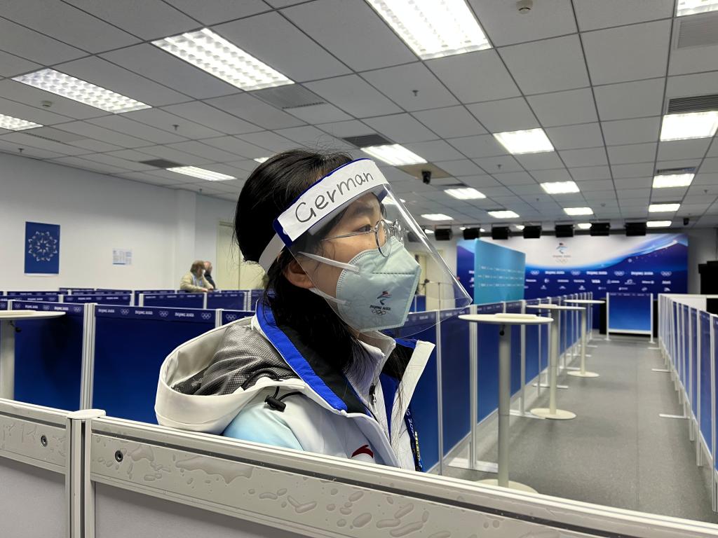 终于,时间来到了晚上,在比赛结束后,我踏入了那个在之后几天要一直工作的地方:媒体混采区。我和日语翻译志愿者一起接力翻译,从日语到中文再到英语,我感受到媒体的热情,翻译的时候也带着相同的喜悦。虽然在翻译过程中我们也遇到了不少问题,比如运动员声音太小,我们只能靠近他们那一侧翻译。而且媒体混采区那边人声鼎沸,人来人往,我们也很难很好地传递翻译好的内容。但无论是运动员还是媒体都十分友善,因为一切都是为了更好进行沟通和交流,最终呈现一届绿色、包容、开放、共享的冬奥会。