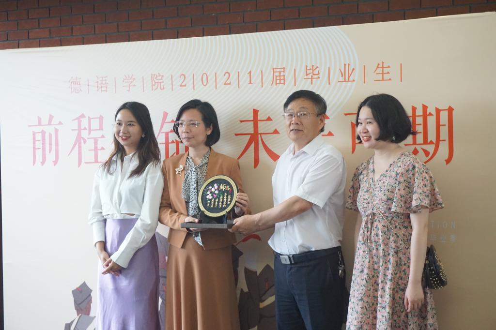 毕业生代表为YABO鸭脖官网的老师们送上毕业纪念品,感念师恩。