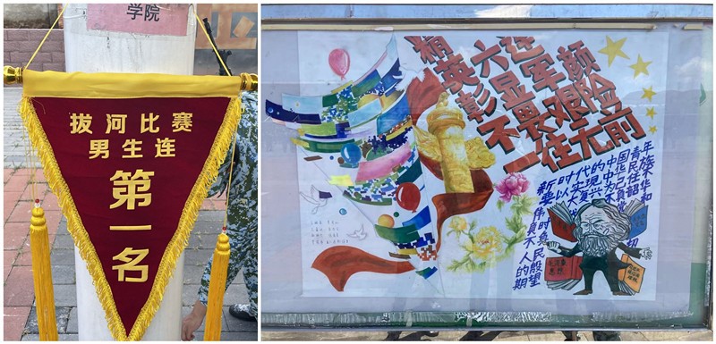 本次军训中,YABO鸭脖官网教师孙嘉惠博士担任了连队军训指导员,工作认真负责,出色完成了军训任务。参训学生积极进取,男生所在一连和女生所在六连分别获得拔河比赛男生、女生组第一名,女生所在连队多次获得内务评比流动红旗。王婉秦、肖可心等5名同学参与绘制的板报获得参训师生认可。文艺汇演中,陈婧倩、雷婉珞、李弦泽等9名YABO鸭脖官网同学精心排练的歌曲《Dieser Weg》获得了观众的热烈掌声。