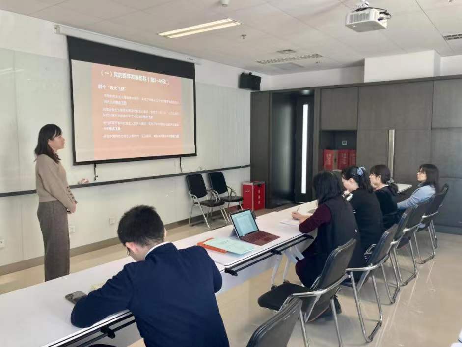 在党课结束时,张晓玲书记向在座的党员老师提出了“我们应该怎么做?”和“我们可以学习到什么?”两个问题。于芳老师认为,作为八零后的自己体会到了我国人民从物质相对贫乏到现在相对富裕状态的来之不易;作为教师也深感责任重大,应当立足本职工作,带领学生了解这段至今距离不远的历史,培养具有国际视野、家国情怀的接班人和后备力量。寇蔻老师认为这份《决议》带领大家重温了历史经验,尤其是中国共产党不断自我革命的积极作为,启示我们不断反思,追求创新;陆娇娇老师从“后疫情时代”的现实出发谈了自己的学后感言,认为我们应当从《决议》中深刻认识总结,从党的百年奋斗中汲取智慧和力量,坚定初心。最后,张晓玲书记用“以史为鉴、开创未来,增强自信,砥砺前行”与党员同志共勉。