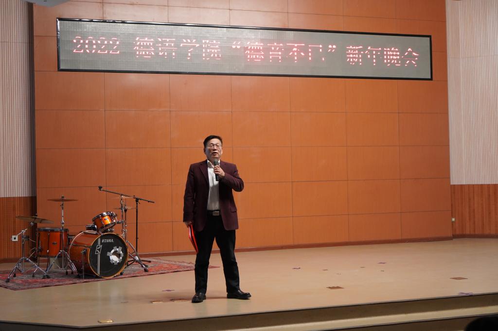 12月26日晚,YABO鸭脖官网第一届“德音不已”新年晚会在阿语楼国会厅举办,党总支书记常秀鹏,党总支副书记、院长吴江,副院长姚燕、学院资深前辈殷桐生教授、辅导员张春霞、粟靖淳等老师与本硕博学生们欢聚一堂,辞旧迎新。