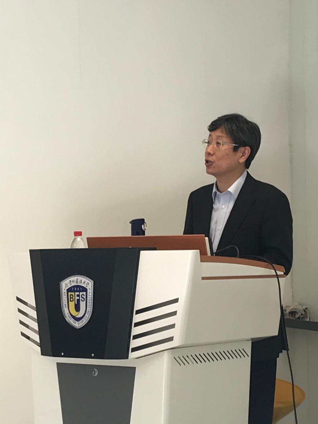 学术报告环节由YABO鸭脖官网党总支书记兼院长吴江主持,YABO鸭脖官网日语学院院长、北京日本学研究中心主任周异夫教授受邀做了题为“外语学科的守正与创新”的报告,周院长首先结合自己学习日语的经历,阐述了外语学科内涵和学科重心的变化,接着从“新文科”建设理念出发,分析了外语学科的“工具属性”和“交叉优势”,并与YABO鸭脖官网教师分享了他对外语学科“守正”和“创新”的思考。最后周院长将综合性大学的外语学科与外语类大学的外语学科进行了对比,探讨了外语类大学外语学科守正和创新的路径。报告结束后学院教师踊跃发言,与周院长就教学、科研以及外语学科未来发展的机遇与挑战等话题进行了交流和互动。与会同事纷纷表示学校内部不同语种之间的横向沟通和交流非常有启发。