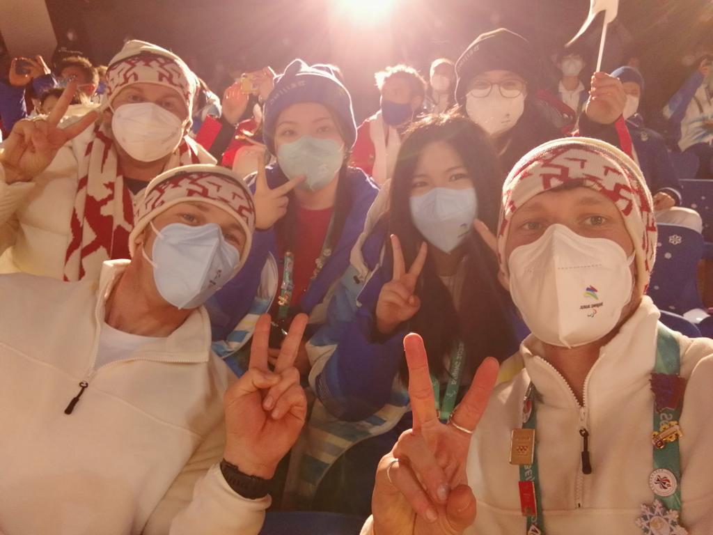 我也有幸参加了冬残奥会的开幕式和闭幕式,两次都作为英国代表团的入场引导助理。我们引导他们在居住楼下集合,穿过冬奥村走向巴士站,从巴士站出发前往国家体育馆,最后到达鸟巢。一路上遇到无数工作人员:安检人员、巴士司机、执勤交警,微笑挥手的志愿者......每个人在自己的岗位上兢兢业业,以自己的方式为这场体育盛会奉献自己的力量。