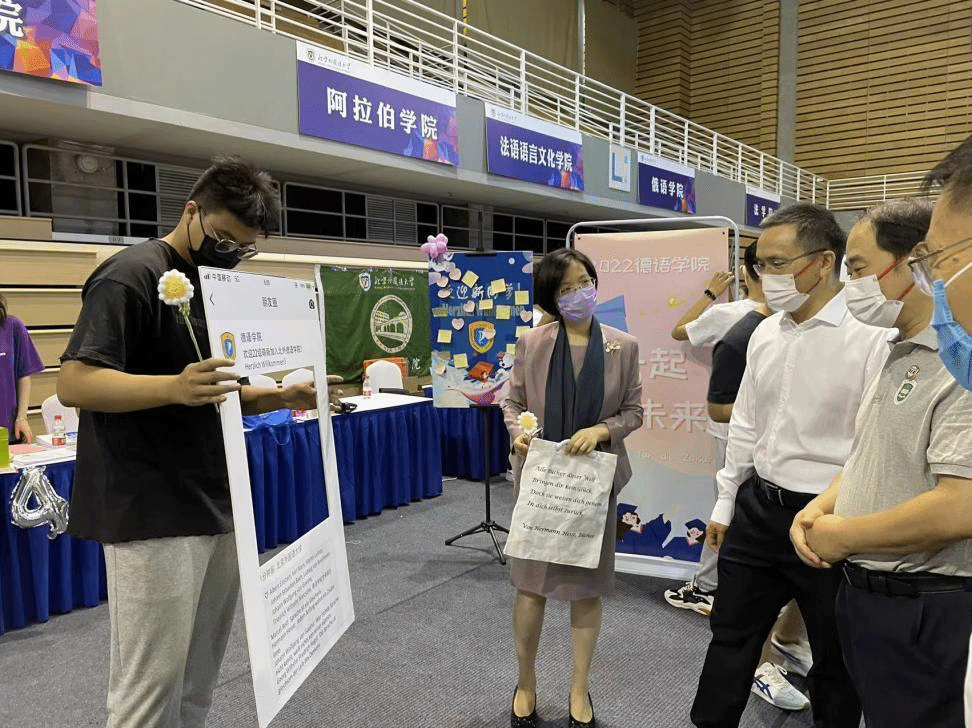 校党委书记王定华,党委副书记、校长杨丹、党委常委、副校长贾德忠来到YABO鸭脖官网新生报到处指导工作,YABO鸭脖官网党总支书记常秀鹏,党总支副书记、院长吴江和辅导员张春霞、张婧、黄唯城给校领导展示了迎新处的布置与新生礼品,之后校领导与大家一起亲切合影。