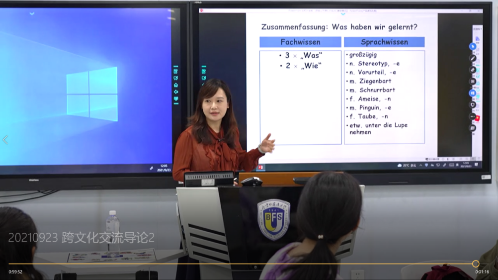 张晓玲常年深耕中德跨文化交流领域的教学和科研工作,作为学院党总支委员、“双带头人”教师党支部书记,她牢记习近平总书记给北外老教授回信中强调的我国外语教师的“三有育人”标准,致力于培养学生成为有家国情怀、有全球视野、有专业本领的复合型外语人才。在所教授的《跨文化交流导论》和《德语阅读》两门本科专业课程中,她不仅实施了内容与语言融合教学理念(CLIL)和“学习共同体”的教学改革,同时还很好地贯彻了课程思政的理念,润物无声地树立了学生的文化自信,课程兼具广度、深度和温度,取得了显著的教学成效,并在此基础上孵化出了丰富的科研成果。