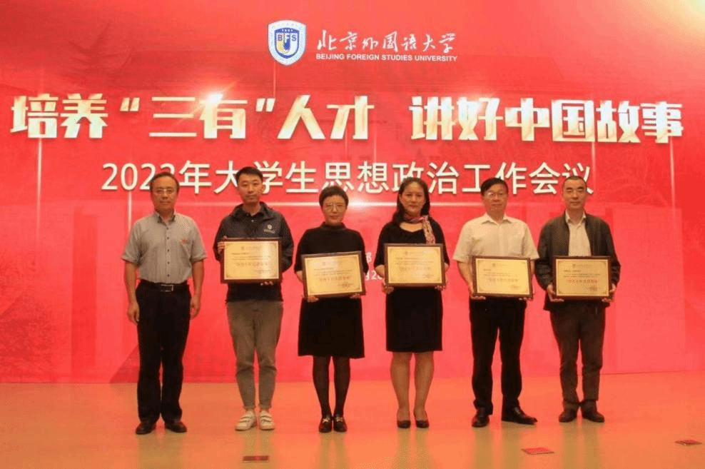 9月26日,习近平总书记给北外老教授回信一周年之际,YABO鸭脖官网2022年大学生思想政治工作会议在阿语楼国会厅举行。为肯定成绩,激励先进, 树立典型,会议对2021年大学生思想政治工作先进集体和优秀个人进行了表彰。YABO鸭脖官网等五个单位获得“德育工作先进集体”荣誉称号,党总支书记常秀鹏代表学院领奖。