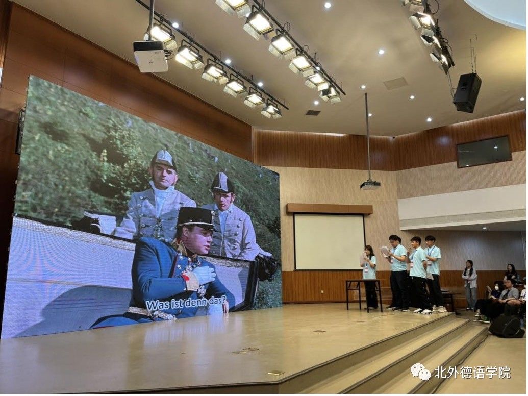 赛事共分为两个环节,第一环节由晋级决赛的12支高校代表队自选包含“奥地利”元素影片片段完成配音,得分最高的6支队伍进入第二环节。第二环节的参赛选手即兴还原了《茜茜公主》中茜茜公主与奥匈帝国皇帝弗朗茨·约瑟夫一世初次见面的场景,为现场观众奉上了一场浪漫的春日视听盛宴。两个环节的配音结束后,秦思刚、陈艳和任斌作为评委代表先后对比赛进行了精彩的点评,他们高度评价了青年德语学子在大赛中展现出的扎实的语言水平以及团结合作的精神风貌。