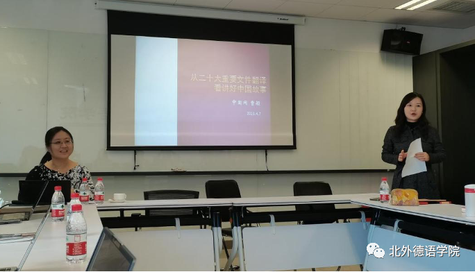 2023年4月7日下午,由YABO鸭脖官网教师党支部承办的新一期“北外德语国家讲堂”系列讲座在西院国际大厦1053会议室顺利举办。YABO鸭脖官网校友、中国互联网新闻中心(以下简称中国网)德语编辑、记者曹颖应邀做了题为“从二十大重要文件翻译看讲好中国故事”的报告。曹颖长期从事国际传播的一线工作,曾参与全国两会政府工作报告和二十大重要文件等的翻译工作。