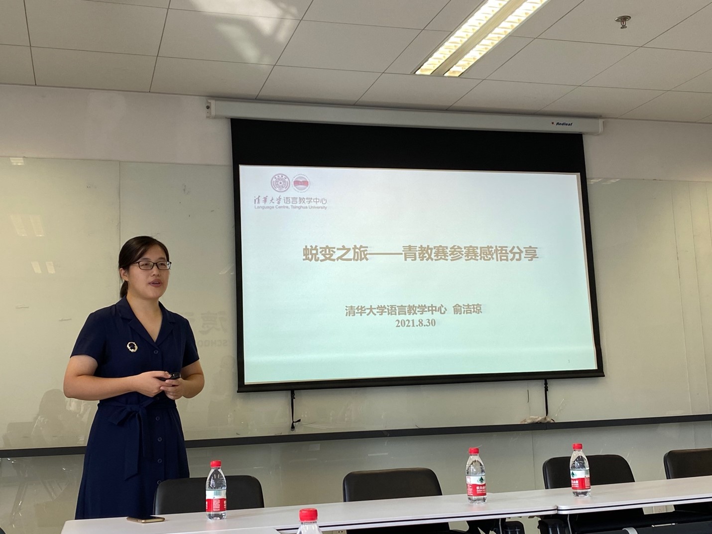 在此次报告活动中,俞洁琼博士分享了她今年参加第十二届北京市青教赛的备赛和参赛经历。俞博士认为,青教赛的挑战在于授课内容不熟、授课环境陌生、受众群体未知和时间受到限制,因此教师需要做好充足细致的准备,对参赛课程进行不断地打磨。课程设置应重视核心观点、切入点、创新点、重难点和基本结构等要素,敢于跳出课本,在讲授语言本身规律的同时,自然而然地体现德语国家文化。俞博士认为,青教赛不单单是一次教学比赛,而且是个人蜕变和成长的过程。经过此次教学比赛,俞博士在课程选题、教学设计、现场展示和课程思政方面都有了很大的提高,达到了“以赛促教”的效果。