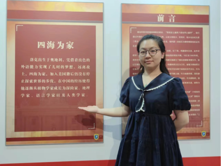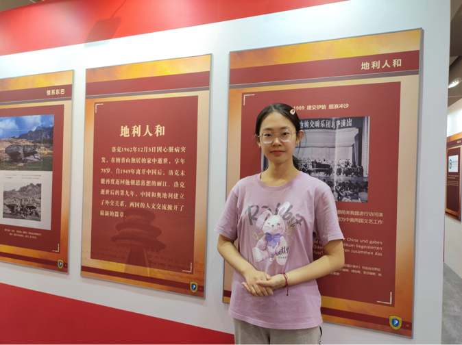 很荣幸能够担任“洛克与中国”主题展的讲解员,这次经历使我深入地了解了洛克先生的生平和中奥建交以来的重要篇章。在讲解过程中,同参观者的互动总会引发我新的思考,于我而言,这也正是讲解的魅力所在。如今展览即将落下帷幕,但洛克先生的风采会在我心中烙下印记,鼓舞我在理想的道路上不断前进。