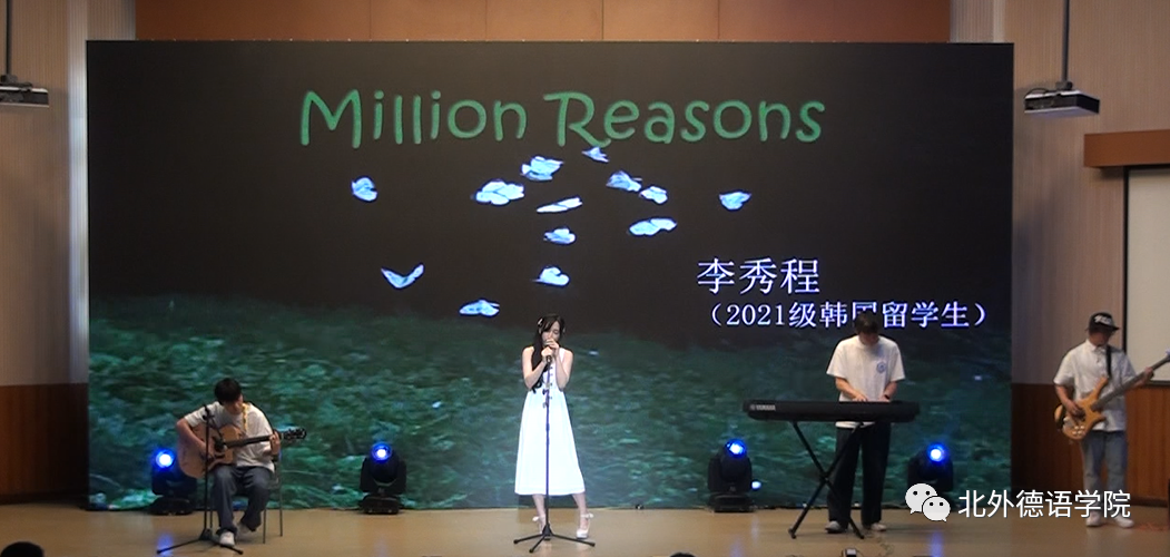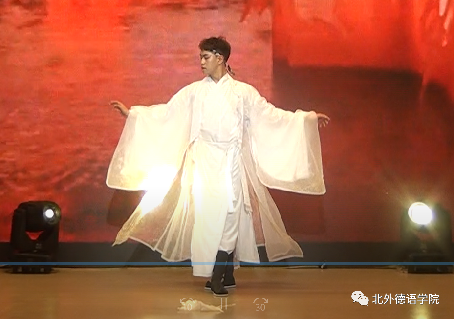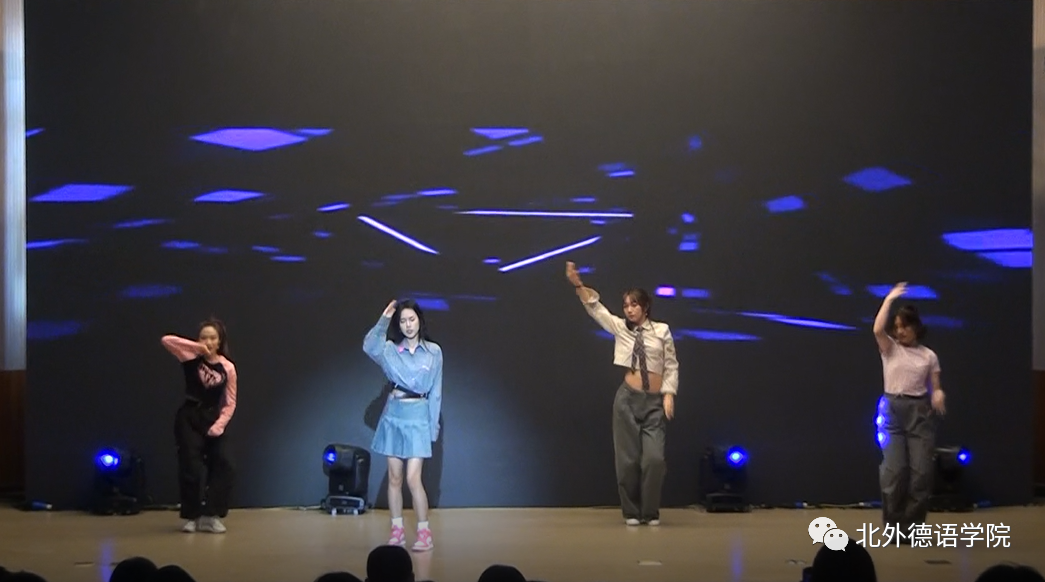 高年级学生载歌载舞迎接新生,21级韩国留学生李秀程带来英文歌曲《Million Reasons》,独特的声线仿佛原声再现;20级本科生张珈睿、李鑫街舞表演用节拍和舞步燃起全场的气氛;21级博士生孙策哈吉与23级博士生陈丹阳咏唱中德文诗歌《乘着歌声的翅膀》,尽显歌德经典诗歌魅力;20级本科生谢振韬一曲《水中花》艳惊四座;23级硕士生郭沈嘉乐、21级本科生杨茹涵、21级本科生田婧雯德文配音电影《茜茜公主》,重现一代名后风采;阿语学院20级本科生刘明骋应邀表演古典水袖舞《探窗》让人叹为观止;21级本科生李函忆精彩演绎歌曲《seventeen》;23级硕士生韩彦如《Dance with Chris Brown》舞动全场。