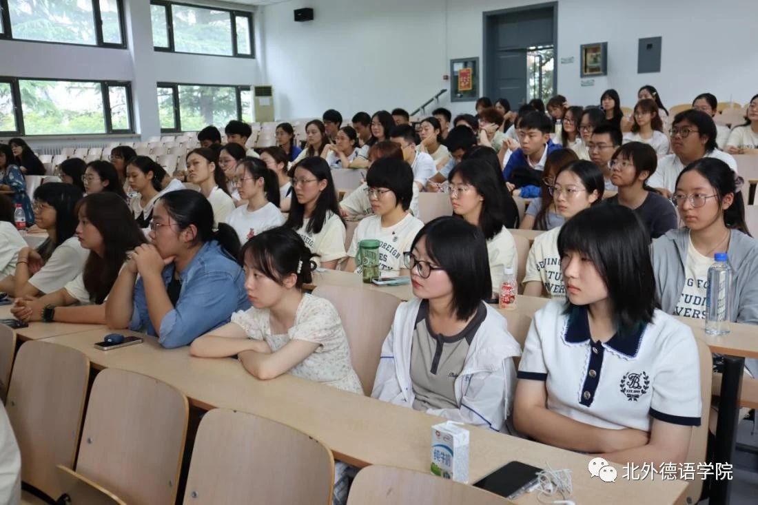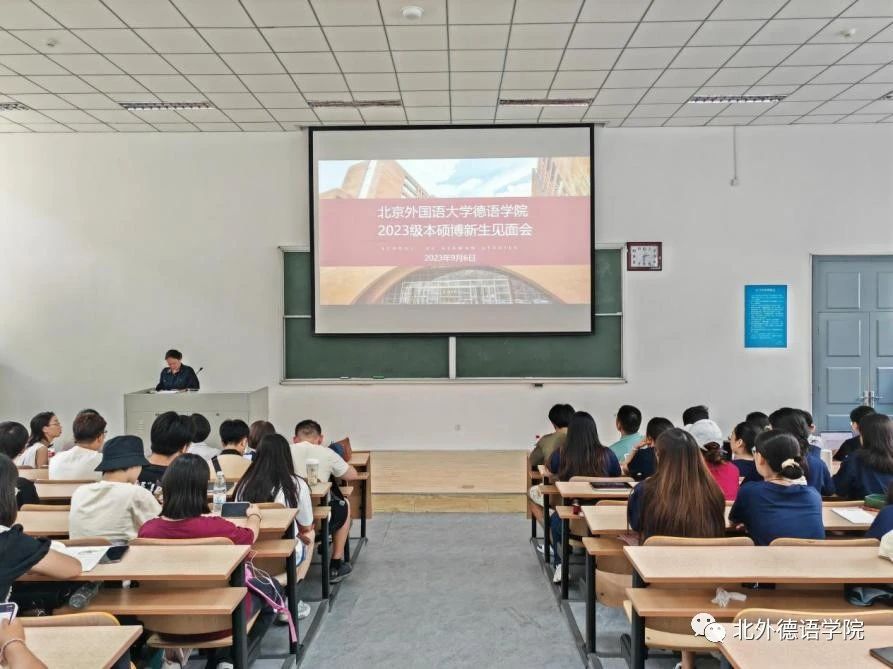 之后,学院党总支以及党政联席会成员先后发言。党总支成员、教学秘书于芳鼓励新生树立新的目标,努力实现梦想;党总支委员、副院长张晓玲、寇蔻勉励新生积极参与学院丰富多彩的各项活动,通过学习德语遇到更好的自己,认识更大的世界,用德语成就梦想,用梦想创造未来!党总支常务副书记李勇引用抗大校训“团结、紧张、严肃、活泼”,希望新生在大学宿舍生活中养成包容差异的生活习惯,搞好团结;在学院和学校的各种集体活动中,在各项校内外竞赛中,团结一致,共创佳绩。保持德语人严谨、认真和细致的好传统作风,勇创新、善突破。保持持之以恒、坚持阅读等良好的微习惯,遇见最好的自己。党总支书记、院长吴江借用汉字“熵”的由来以及管理学提出的实现熵减的三个路径,结合北外YABO鸭脖官网的发展史,勉励2023级本硕博新生保持开放的心态,学会与不同的学科和方向实现“能量交换”,敢于尝试创新远离稳态,秉持“兼容并蓄 博学笃行”的北外校训,开启在北外的晨读和暮思!