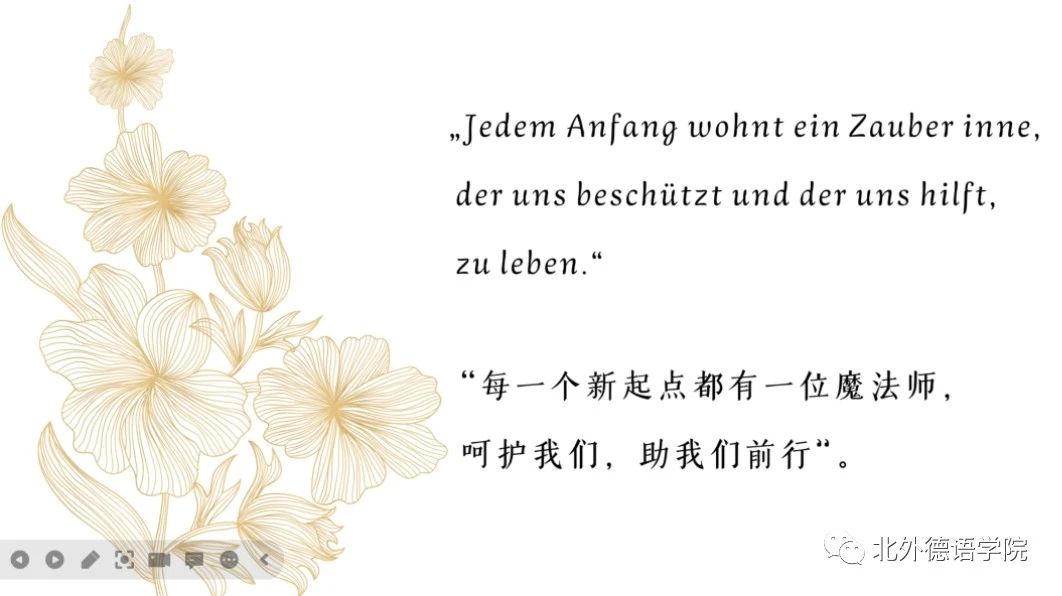 徐四季、李婧和陆娇娇作为教研室主任代表发言,勉励新生勇敢做自己,从北外出发,走向德语国家,在中欧交流的大舞台贡献自己的力量,祝福新生在北外沐浴四季阳光,播撒梦想的种子,合理规划好时间,充分培养兴趣与才干,不负韶华,静待花开;葛囡囡、史良作为班主任代表发言,鼓励新生寻找互帮互助的朋友,结识志同道合的伙伴,在模仿和超越榜样的过程中塑造出独特的自我;洪堃绿、武迪作为青年教师代表发言,祝福新生在北外YABO鸭脖官网度过充实美好的多彩时光,学有所成,开启行走世界的人生新篇章!包葛耿、邱袁炜代表学院行政工作人员发言,希望新生在北外的日子过得开心,每天进步一点点;辅导员张春霞、张婧、黄唯城勉励新生珍惜青春年华,勇攀学业高峰,敢于行走世界,秉承红色基因,成为又红又专又雅的北外德语人,承担起中华民族伟大复兴、构建人类命运共同体的重任。