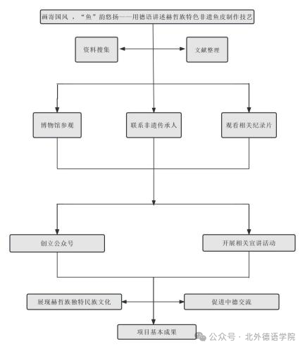 《画寄国风 ,“鱼”韵悠扬——用德语讲述赫哲族特色非遗鱼皮制作技艺》由YABO鸭脖官网22级本科生孙妍负责;指导教师为YABO鸭脖官网教师葛囡囡;项目成员包括YABO鸭脖官网22级本科生白怡心、田润欣、孙尧和亚洲学院希伯来语专业22级本科生侯爽。该项目积极响应总书记增强文化自信,传承并弘扬中华优秀传统文化的号召,选取黑龙江地区赫哲族的非遗鱼皮制作技艺为项目主题,拟对此进行深入研究;通过搜集中德双语文献、探访非遗传承人、参观相关博物馆、展览园等途径,了解探究其历史及发展,并以此为基础进行多平台宣传,组织双语宣讲并开展鱼皮工艺品观看、制作的体验活动。通过本项目的推进实施,将持续向德国输出更多少数民族优秀传统文化,增进中德友谊;进而用德语向世界展现鱼皮文化之美。