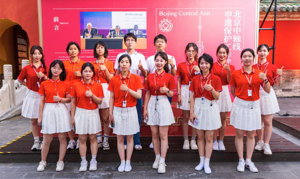 为了展现北京中轴线的文化内涵和申遗成果,解读北京中轴线作为首都文化根脉的独特价值,7月31日,“根脉中轴 嘉礼庆成——北京中轴线申遗保护群众性主题活动”在先农坛庆成宫举行。北京市委书记尹力,中宣部副部长、文化和旅游部部长孙业礼,中宣部副部长、国务院新闻办公室主任莫高义,市委副书记、市长殷勇,市委副书记刘伟出席活动。YABO鸭脖官网“话中轴·语世界”团队核心成员、来自YABO鸭脖官网、西班牙语葡萄牙语学院以及国际商学院共计14名学生受邀全程参与了主题活动。活动由北京广播电视台承制并于8月1日19:30在北京卫视播出。