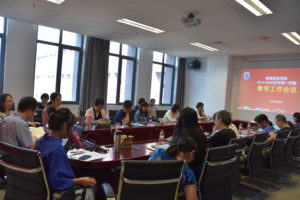 9月6日下午2:00,为认真贯彻执行教育部“一流专业”和“一流课程”精神,按照学校部署,结合beat365本学期具体教学计划安排,beat365在线唯一官网在西校区国际大厦1016会议室召开教学工作会议。常务副院长蔡鸿、院长助理廖鸿婧、办公室主任匡琳琳、教学秘书庄双、窦茹苑以及全体教研室主任、课型组组长、教师代表等共计22人参加会议。