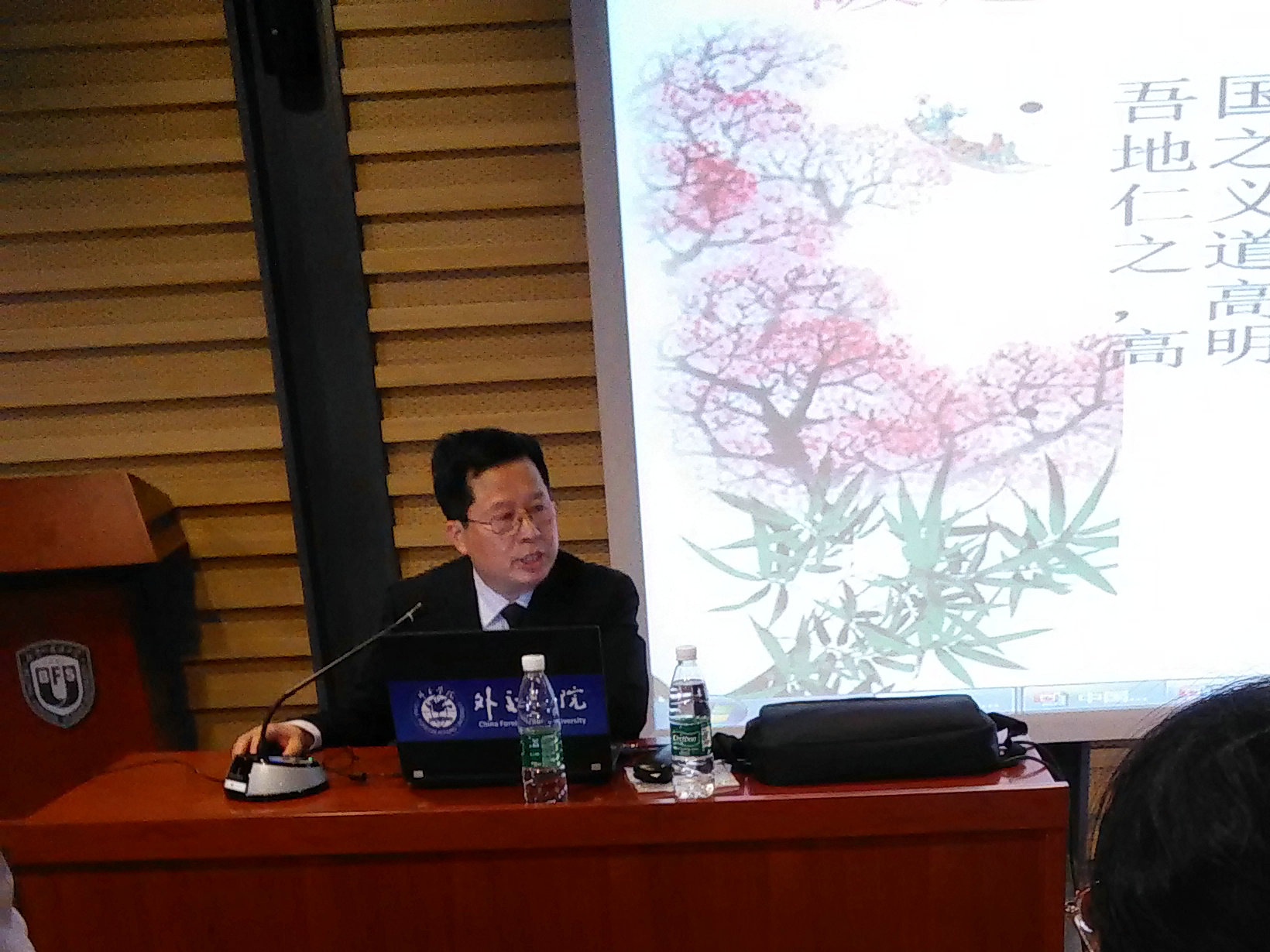 武波教授从中国文化的特质出发,使用具体事例说明翻译的基础是博通古今和跨越中西。他认为,中国文化的特质是“道学”和“合为贵”,中国文化的核心是道德观和艺术性,这在世界文化中有着独特的重要意义。武波教授还指出,国学昌,国运昌;国学盛,中华盛;国学明,中华久。因此,国学、国运、翻译密切相关。在整个讲座过程,武波教授利用日常生活中的实例和翻译实例娓娓道出中国文化的深刻内涵以及翻译过程应该采取的策略。