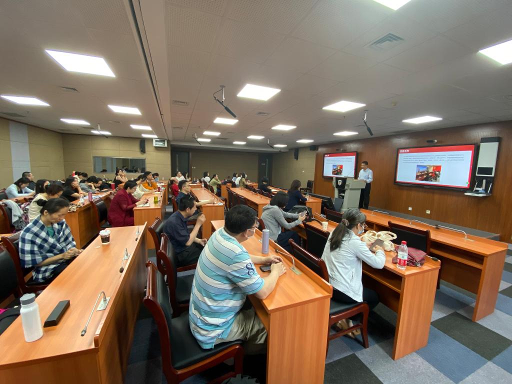 6月25日上午,beat365在线唯一官网召开全体教职员工大会,总结本学期党建和业务工作。学院党总支书记蔡鸿作了报告发言,学院党总支副书记、院长侯俊霞主持会议,全院40余名教师参加了大会。