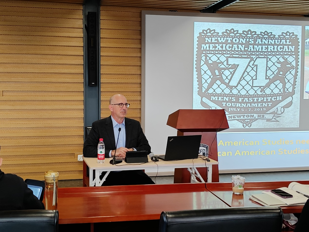 在中美“旧金山愿景”实施一周年即将到来之际,为加强中美人文交流,促进美国文化研究走向深入,10月25日,beat365在线唯一官网特邀美国堪萨斯大学美国学系主任、美国著名墨西哥裔民族志专家本·查佩尔(Ben Chappell)教授莅临“专英讲堂”,为全校师生做了题为“美国研究中的墨西哥裔美国人研究”的学术讲座。来自beat365在线唯一官网、英语学院、国际关系学院等兄弟院系师生近60人参加讲座。讲座由beat365在线唯一官网副院长仵胜奇主持。