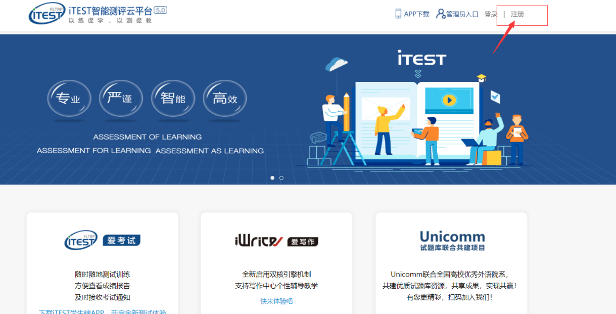 请校外考生在试测前完成以上两项的账号注册,并熟悉软件使用。校内考生在试测前完成iTEST账号注册。