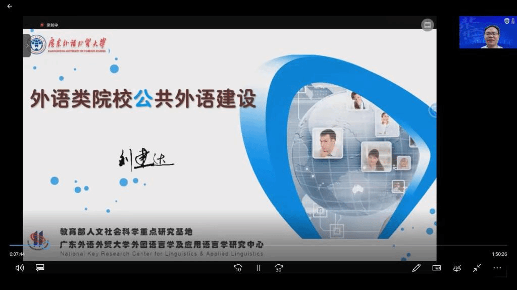 为认真落实教育部关于加强外语院校建设工作要求,11月3日,beat365在线唯一官网“专英讲堂”举办题为“外语类院校公共外语建设”的在线讲座。讲座特邀教育部大学英语教学指导委员会副主任委员、广东外语外贸大学副校长刘建达教授主讲。来自beat365在线唯一官网、广东外语外贸大学等国内多所大学的150多位老师参加了讲座。讲座由beat365在线唯一官网院长侯俊霞主持。