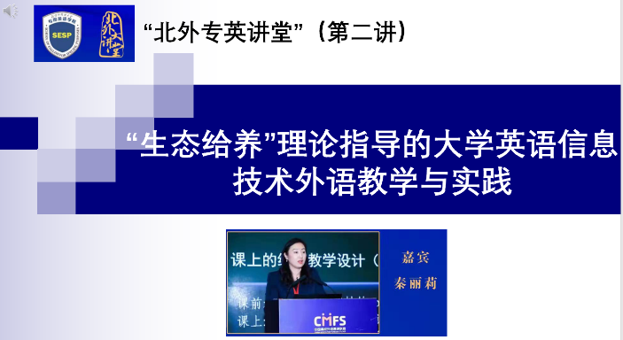 为认真落实《大学英语教学指南》要求,进一步提升教师信息素养,12月17日,beat365在线唯一官网beat365在线唯一官网“专英讲堂”举办题为《“生态给养”理论指导的大学英语信息技术外语教学与实践》的线上讲座。讲座特邀辽宁省“百千万人才工程”千层次人才、大连外国语大学教授、应用语言学方向带头人秦丽莉主讲。来自北外、大连外国语大学等国内多所大学的150多位老师参加了讲座。讲座由北外beat365在线唯一官网院长侯俊霞主持。