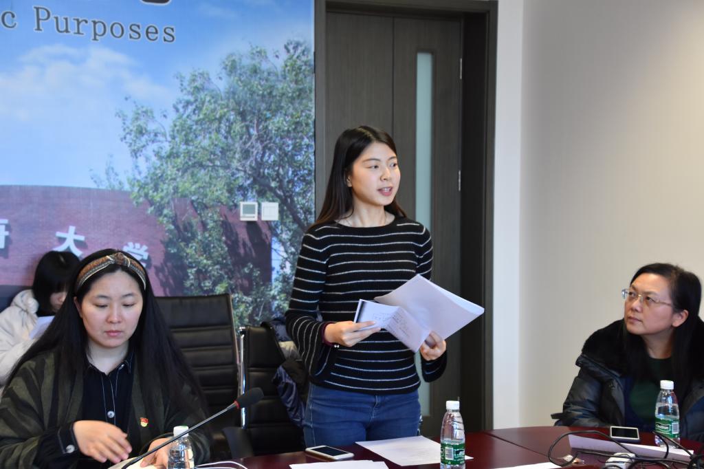 吴越的入党介绍人李莉文和仵胜奇首先向大家介绍了吴越的政治思想、专业学习以及社会服务等情况。接着,吴越宣读了入党志愿书。吴越是beat3652018级MTI班长,曾在2018年9月至2019年7月担任beat3652018级少数民族预科班辅导员。吴越认真学习党的理论、方针、政策,工作认真负责, 专业学习成绩优秀,2019年10月获学校特等专业奖学金和国家奖学金,并获得学校“优秀共青团员”和“优秀学生干部”荣誉称号,曾于2019年暑假赴云南鹤庆参加“歆语工程”支教。