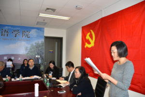 在随后的民主评议环节中,与会师生党员对接收廖鸿婧老师为中共预备党员一事进行了充分的讨论。李莉文老师对廖鸿婧老师在政治思想、教学科研、社会服务等方面做出的突出成绩表示了充分的肯定并特别指出,廖鸿婧老师自入职以来理想信念坚定,教学突出,科研优秀,热心公益,特别是自2015年入校递交入党申请书三年以来,一直以党员的标准严格要求自己,认真学习党的知识和理论,特别是十九大精神和习近平新时代中国特色社会主义思想,已经达到了中国共产党预备党员的标准。